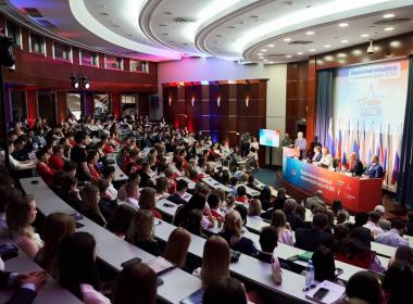 На площадке МГИМО Дмитрий Шевченко подробно рассказал о деятельности Центра, его программах и новых проектах - «ВОИН.Кино», «ВОИН.Арт» и других.